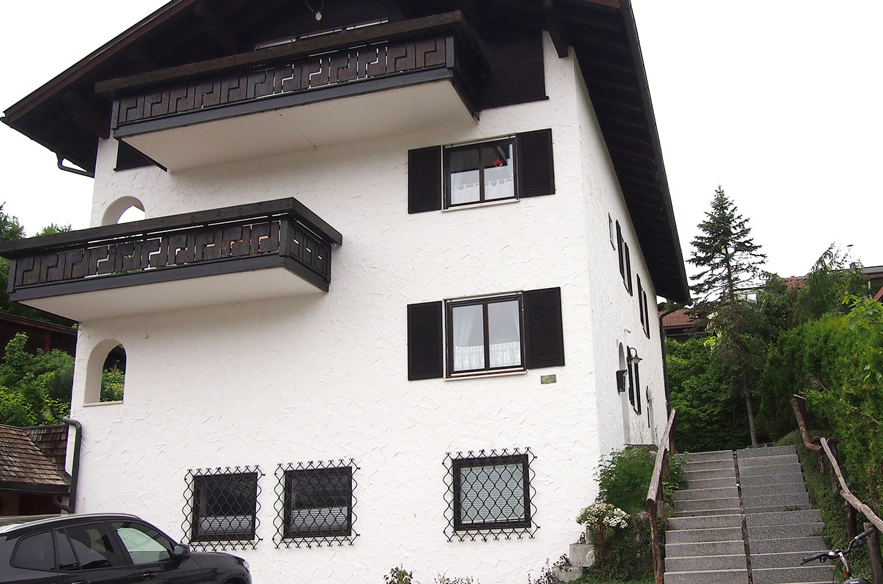 Die angebotene Immobilie befindet am Ortsrand von Oberstdorf im Dachgeschöss eines 3-Parteien-Doppelhauses, zu dem ein ruhige Sackgasse führt.
