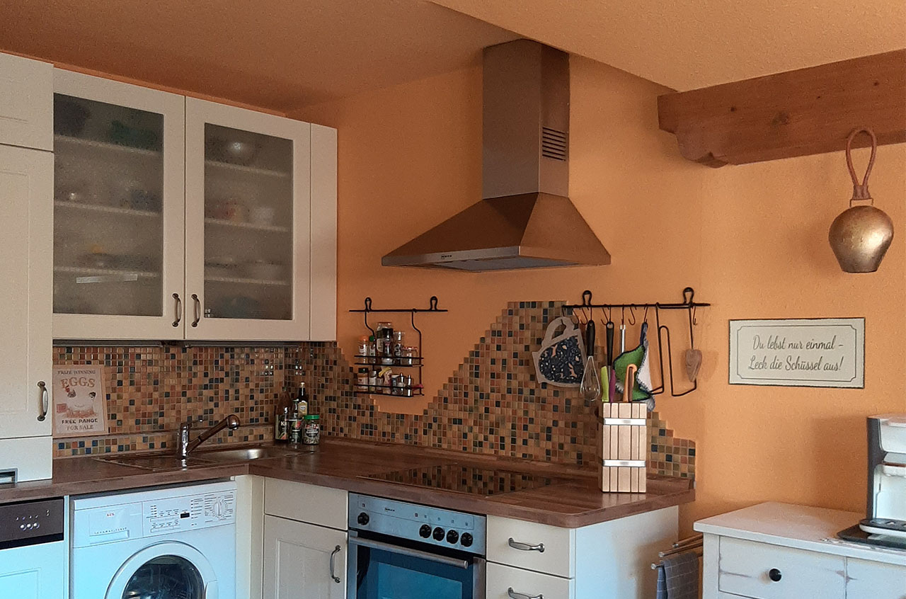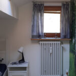 Die „Perle“ der Wohnung ist die Küche: durch die nachträglich eingebaute Gaube sind die knapp 12 qm erstaunlich geräumig und bietet ausreichent Platz zum Kochen und Essen. Dazu gehört eine sehr schöne Küche mit einem Geschirrspüler.